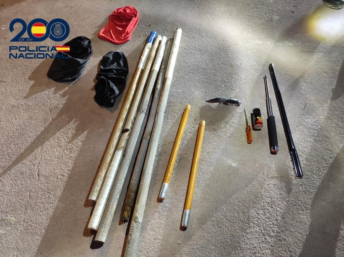 Material incautado por la Policía Nacional en Madrid a aficionados del Atlético de Madrid y Eintrach Frankfurt, evitando un enfrentamiento entre ambos