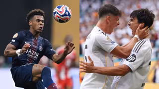 El jugador del PSG Desiré Doué y los futbolistas del Real Madrid Arda Güler y Gonzalo García, en el Mundial de Clubes 2025.