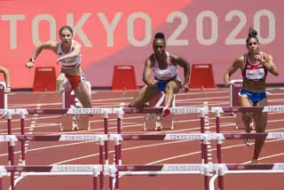 01 August 2021, Japan, Tokyo: Puerto Rico's Jasmine Camacho-Quinn (C) competes in the Women's 100m Hurdles SemiFinal race of the athletics competition at the Olympic Stadium during the Tokyo 2020 Olympic Games. Photo: Ramn ''tonito'' Zayas/El Nuevo Dia - Ramn ''tonito'' Zayas/El Nue / DPA