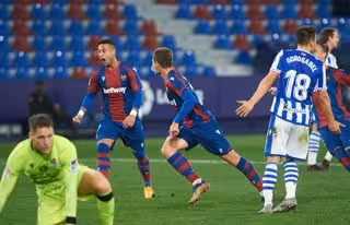 El conjunto de Paco López no tardó en replicar con el empate de Roger Martí, que fue el más listo al aprovechar un rechace provocado por Dani Gómez. El gol dio alas a un Levante que fue a más. La Real, que vio cómo le anulaban un gol en la segunda mitad, acabó perdiendo cuando De Frutos fusiló a Álex Remiro. Es la quinta jornada consecutiva sin ganar para los 'txuri urdines'.