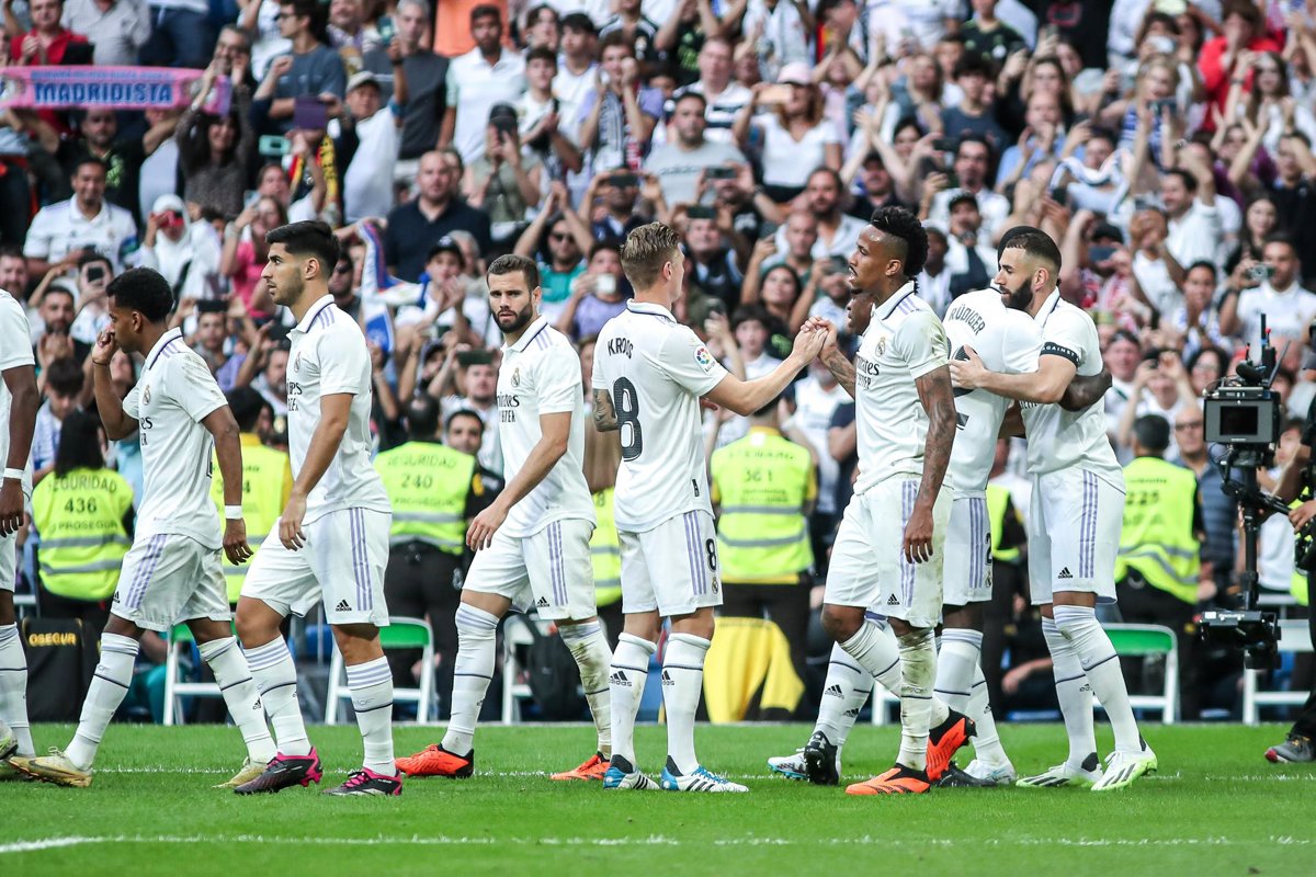 Karim Benzema of Real Madrid celebrates a goal during the spanish league, La Liga Santander, football match played between Real Madrid and Athletic Club de Bilbao at Santiago Bernabeu stadium on June 04, 2023, in Madrid, Spain. - Irina R. Hipolito / Afp7 / Europa Press