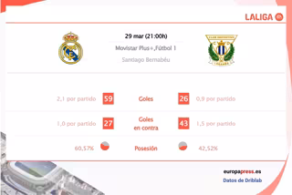 Estadísticas previa Real Madrid vs Leganés. - EPDATA