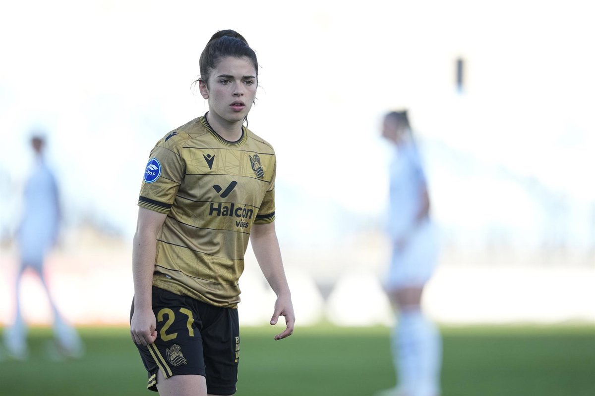 Archivo - Intza Egiguren of Real Sociedad looks on during the Spanish Women League, Liga F, football match played between Real Madrid and Real Sociedad at Alfredo Di Stefano stadium on March 30, 2025, in Valdebebas, Madrid, Spain.