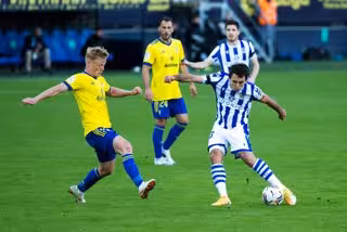 Jonsson of Cadiz and Mikel Oyarzabal of Real Sociedad during LaLiga, football match played between Cadiz Club Futbol and Real Sociedad Club de Futbol at Ramon de Carranza Stadium on November 22, 2020 in Cadiz, Spain. - Joaquin Corchero / AFP7 / Europa Press