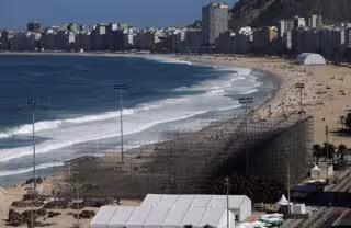 La construcción en la estructura temporal en la playa de Copacabana se detuvo el sábado pero se reanudó luego de que se presentaron los documentos faltantes, según la Secretaría de Medio Ambiente de la ciudad.