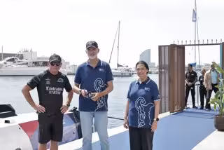 El rey Felipe VI ha presenciado este jueves en Barcelona el inicio matutino de la 37 Copa América de vela, a bordo de un prototipo de barco sostenible de hidrógeno, y en la sesión vespertina ha visitado el Nou Port Olímpic de la 'Ciudad Condal', con motivo de su remodelación en el Moll del Gregal.