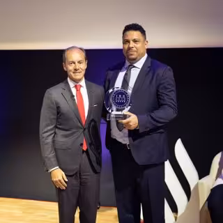 Por su parte, el consejero delegado de Banco Santander confesó que sus hijos quieren "ser Ronaldo", alabó su faceta social como Embajador de la ONU y de la entidad financiera para Liga de Campeones y recordó el eslalon que hizo en el histórico gol contra el Compostela con la camiseta del FC Barcelona.