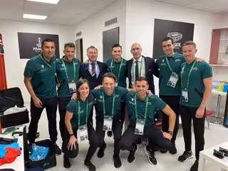 El presidente de la Real Federación Española de Fútbol (RFEF), Luis Rubiales, acompañó este miércoles al árbitro español Carlos del Cerro Grande y a todo su equipo arbitral antes de la final de la Conference League, disputada entre Fiorentina y West Ham United en el Eden Arena de Praga.