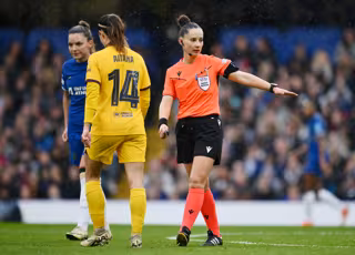 Archivo - Referee Iuliana Demetrescu during the UEFA Women’s Champions League, Semi-finals, 2nd leg football match between Chelsea FC and FC Barcelona on April 27, 2024 at Stamford Bridge in London, England - Photo Ashley Western / Colorsport / DPPI