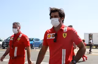 16 July 2021, United Kingdom, Silverstone: Spanish F1 driver Carlos Sainz Jr. of Scuderia Ferrari arrives for the practice of the Grand Prix of Britain Formula One race at the Silverstone Circuit. Photo: Bradley Collyer/PA Wire/dpa - Bradley Collyer/PA Wire/dpa