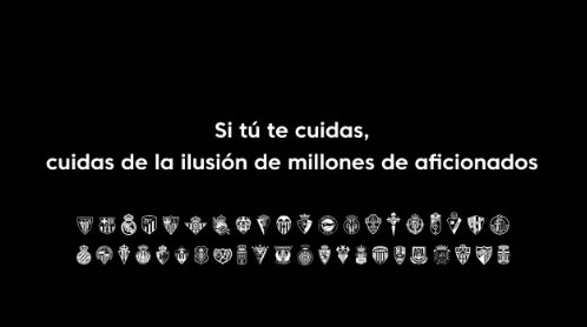 "Hacedlo por vosotros, por los vuestros y por nosotros. Queremos volver a veros en los estadios, volver a sentir, volver a cantar, volver a emocionarnos juntos. El partido de la salud es el más importante ahora mismo, y lo jugamos todos. Ayudadnos a ganarlo. Si tú te cuidas, cuidas de la ilusión de millones de aficionados", concluye.