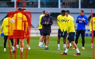 Este jueves, el equipo se entrenó bajo una lluvia constante, en la Ciutat Esportiva Joan Gamper. Una sesión que contó con los jugadores disponibles del primer equipo y los ya habituales jugadores del filial --Peña, Riqui Puig, Collado, Ansu Fati, Araujo, Saverio, Chumi y Monchu--.