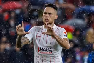20 November 2021, Spain, Seville: Sevilla's Lucas Ocampos celebrates scoring his side's first goal during the Spanish La Liga soccer match between Sevilla FC and Deportivo Alaves at Ramon Sanchez-Pizjuan Stadium. Photo: Jose Luis Contreras/DAX via ZUMA - Jose Luis Contreras/DAX via ZUMA / DPA