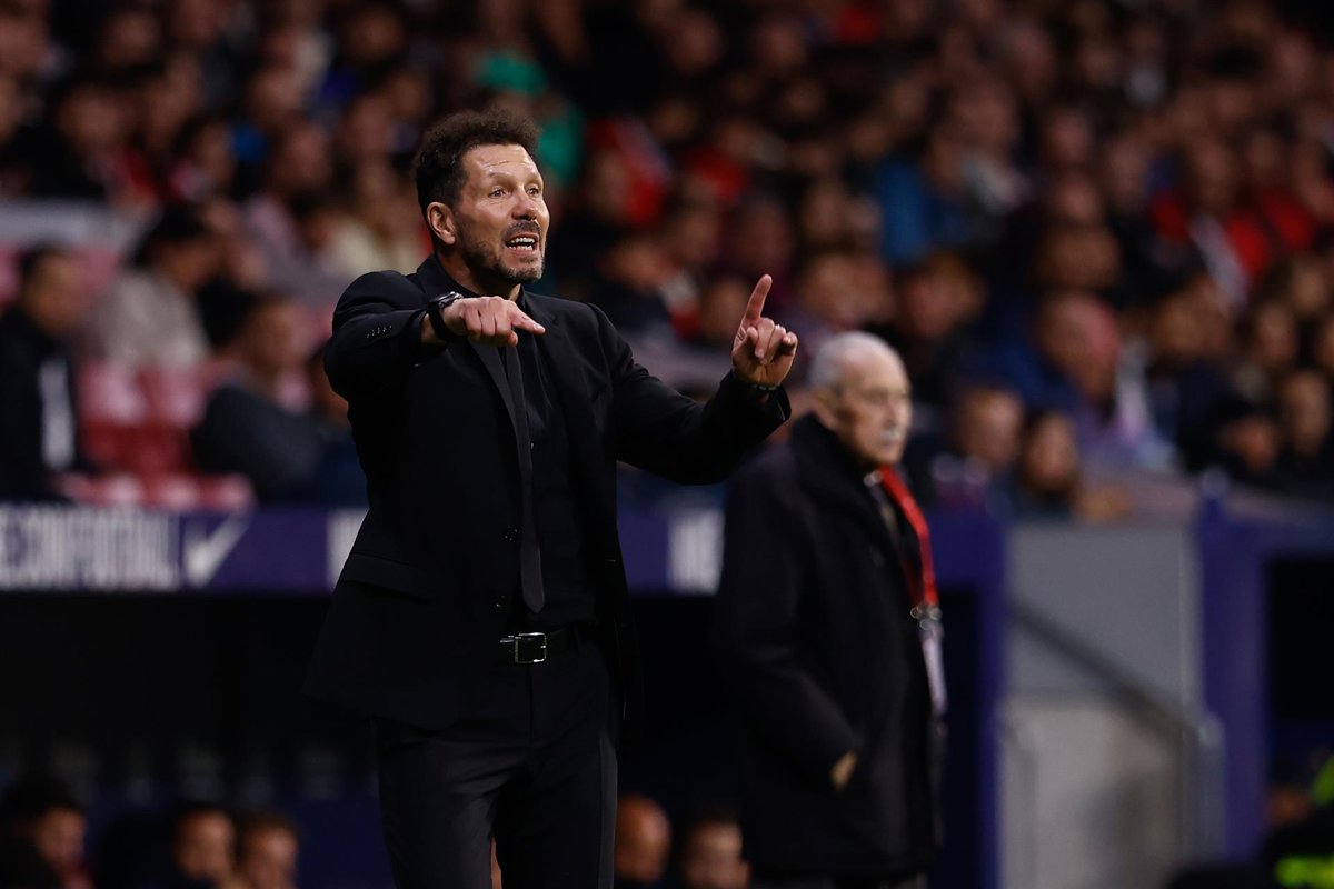 Diego Pablo Simeone, head coach of Atletico de Madrid, gestures during the spanish league, La Liga EA Sports, football match played between Atletico de Madrid and Villarreal CF at Civitas Metropolitano stadium on November 12, 2023, in Madrid, Spain. - Oscar J. Barroso / AFP7 / Europa Press