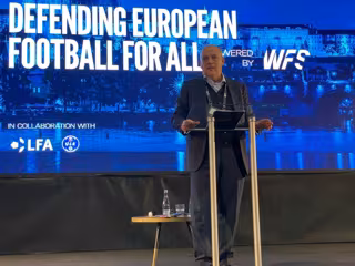 Javier Tebas durante su participación en el foro 'Defendiendo el Fútbol Europe para Todos'