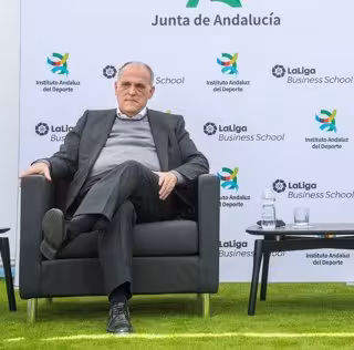 En la firma de un acuerdo con la Junta de Andalucía en Málaga, Javier Tebas se extrañó de que la prensa hable de la posibilidad de que Mbappé o Haaland fichen por el Real Madrid o el FC Barcelona en el mercado estival. "Descarto grandes fichajes. No podemos decir que viene Mbappé o Haaland. Eso no se pueda dar. ¿Venir a España? A jugar al golf, sí", bromeó el presidente de la patronal.