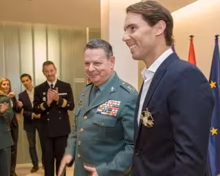 El tenista Rafa Nadal ha colaborado en la iniciativa pionera que la Guardia Civil ha llevado a cabo confluyendo con el 175 aniversario del Cuerpo. En este contexto, la primera Liga Nacional Interuniversitaria de Retos en el Ciberespacio perseguía captar talento juvenil a través de un vídeo promocional de la Cyberleague, protagonizado por el tenista.