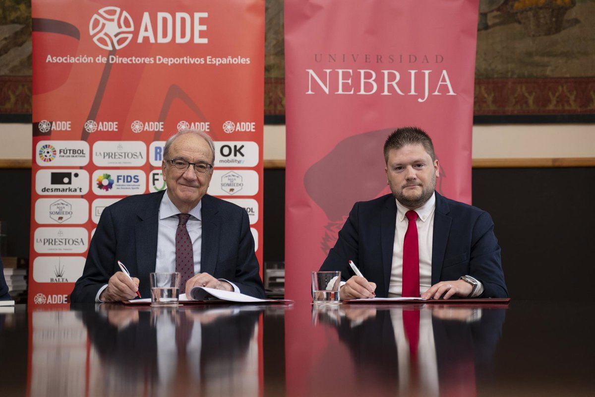 La Universidad Nebrija formará a directores deportivos, secretarios técnicos, ojeadores, directores de cantera, entrenadores, analistas y jugadores de fútbol, tras firmar un acuerdo con la Asociación de Directores Deportivos Españoles (ADDE) para la creación del 'Curso Superior en Dirección General Deportiva'.