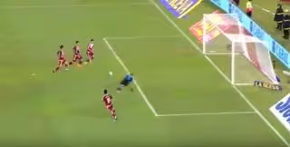 El futbolista argentino, con la portería vacía y todo de cara para marcar el tercer gol para su equipo, apenas consiguió tocar el balón, dando tiempo a Acosta, portero de Belgrano, a retroceder y sacar la pelota justo sobre la línea.