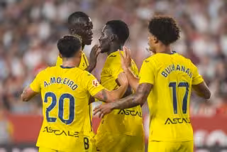 Tani Oluwaseyi of Villarreal CF celebrates a goal during the Spanish league, LaLiga EA Sports, football match played between Sevilla FC and Villarreal CF at Ramon Sanchez-Pizjuan stadium on September 23, 2025, in Sevilla, Spain. - Joaquin Corchero / AFP7 / Europa Press