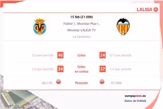 Estadísticas previa Villarreal vs Valencia. - EPDATA