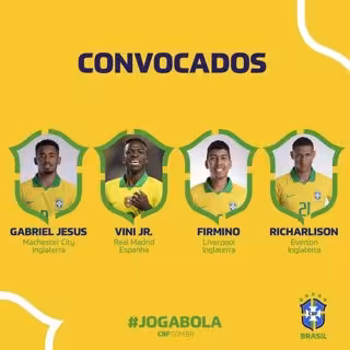 DELANTEROS: Everton (Benfica), Gabriel Jesus (Manchester City), Neymar (Paris Saint-Germain), Richarlison (Everton), Roberto Firmino (Liverpool) y Vinícius (Real Madrid).