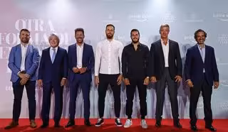 El presidente del club, Enrique Cerezo; el técnico, Diego Pablo Simeone, y los jugadores Koke, Savic, Oblak, Joo Félix, Luis Suárez, Saponjic y Marcos Llorente estuvieron presentes en el acto en el auditorio del estadio, junto al director de contenidos de Amazon Prime Video España y Portugal, Ricardo Carbonero.