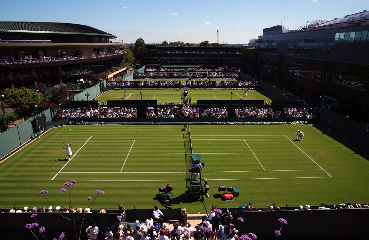 Archivo - 30 June 2025, United Kingdom, London: A general view overlooking the action on court 14, 15, 16 and 17 on day one of the 2025 Wimbledon Championships at the All England Lawn Tennis and Croquet Club. Photo: John Walton/PA Wire/dpa