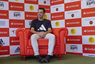 El entrenador español Xavi Hernández en la presentación del Campus Xavi Hernández by Santander en el Santander Work Café de Passeig de Grcia número 54 de Barcelona