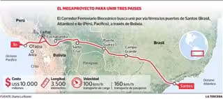 A través de una red ferroviaria de casi 4.000 kilómetros de longitud, el proyecto conectará los países sudamericanos partiendo desde el puerto de Santos en Brasil hasta el de Illo en Perú, pasando por Bolivia.