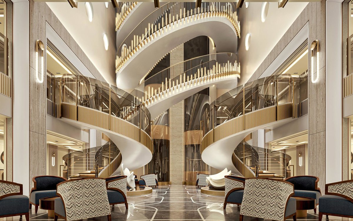 Según los datos facilitados por la compañía, el barco contará con 11 espacios gastronómicos, entre los que destaca la novedad del restaurante Azure, de inspiración mediterránea, que se suma a conceptos ya establecidos de la firma en el segmento del lujo.
