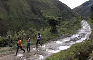 Mujeres caminan por una carretera en Marquetalia Colombia