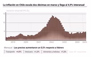 La inflación en Chile escala dos décimas en marzo y llega al 4,9% interanual
