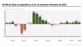 Gráfico con evolución del PIB de Chile. La economía del país creció un 2,3% en el primer trimestre respecto al mismo trimestre del año anterior, según ha divulgado el Banco Central.