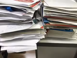 Archivo - Papeles, documentos, torre de folios, desorden de oficina
