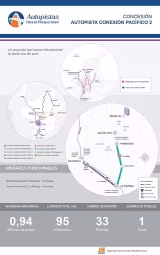 Se trata de dos de los tramos en los que el Gobierno del país ha estructurado la construcción de la vía Conexión Pacífico, según datos de la Agencia Nacional de Infraestructura (ANI) de Colombia que recoge Europa Press.