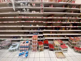 Estanterías con ausencia de productos en un supermercado pocos minutos después de la declaración del Estado de Alarma