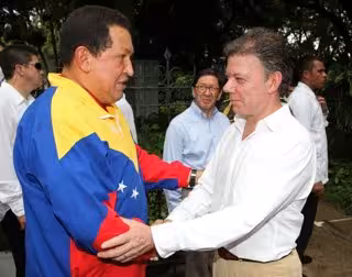 Los presidentes de Venezuela, Hugo Chávez, y de Colombia, Juan Manuel Santos.