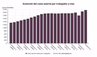 El coste laboral se compone del coste salarial y de los otros costes. En el segundo trimestre, los salarios (todas las remuneraciones, tanto en metálico como en especie) subieron un 4,3% interanual en términos brutos, hasta situarse en una media de 2.153,88 euros por trabajador y mes, la cifra más elevada en un segundo trimestre desde el inicio de la serie, en el año 2000.