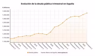 La deuda del conjunto de las administraciones públicas subió en el segundo trimestre hasta el máximo histórico de 1,475 billones de euros, lo que supone un aumento en términos relativos del 1,5% respecto al trimestre anterior, aunque moderó su peso sobre el PIB y la ratio se situó en el 116,1%, según los datos publicados este viernes por el Banco de España.