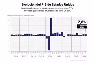 Gráfico con evolución del PIB de Estados Unidos, en tasa interanual