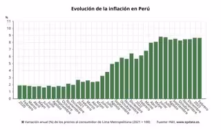 La inflación en Perú se mantiene en el 8,6% interanual en febrero, por segundo mes consecutivo