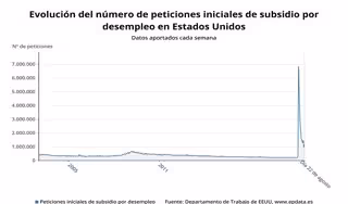 Este gráfico acompaña a la noticia titulada: Estados Unidos vuelve a superar el millón de despidos semanales