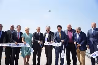 Corte de la cinta en un evento que ha contado con la presencia de altos cargos regionales, estatales y federales junto con el presidente de Ferrovial, Rafael del Pino, el consejero delegado, Ignacio Madridejos, y otros directivos de la compañía.