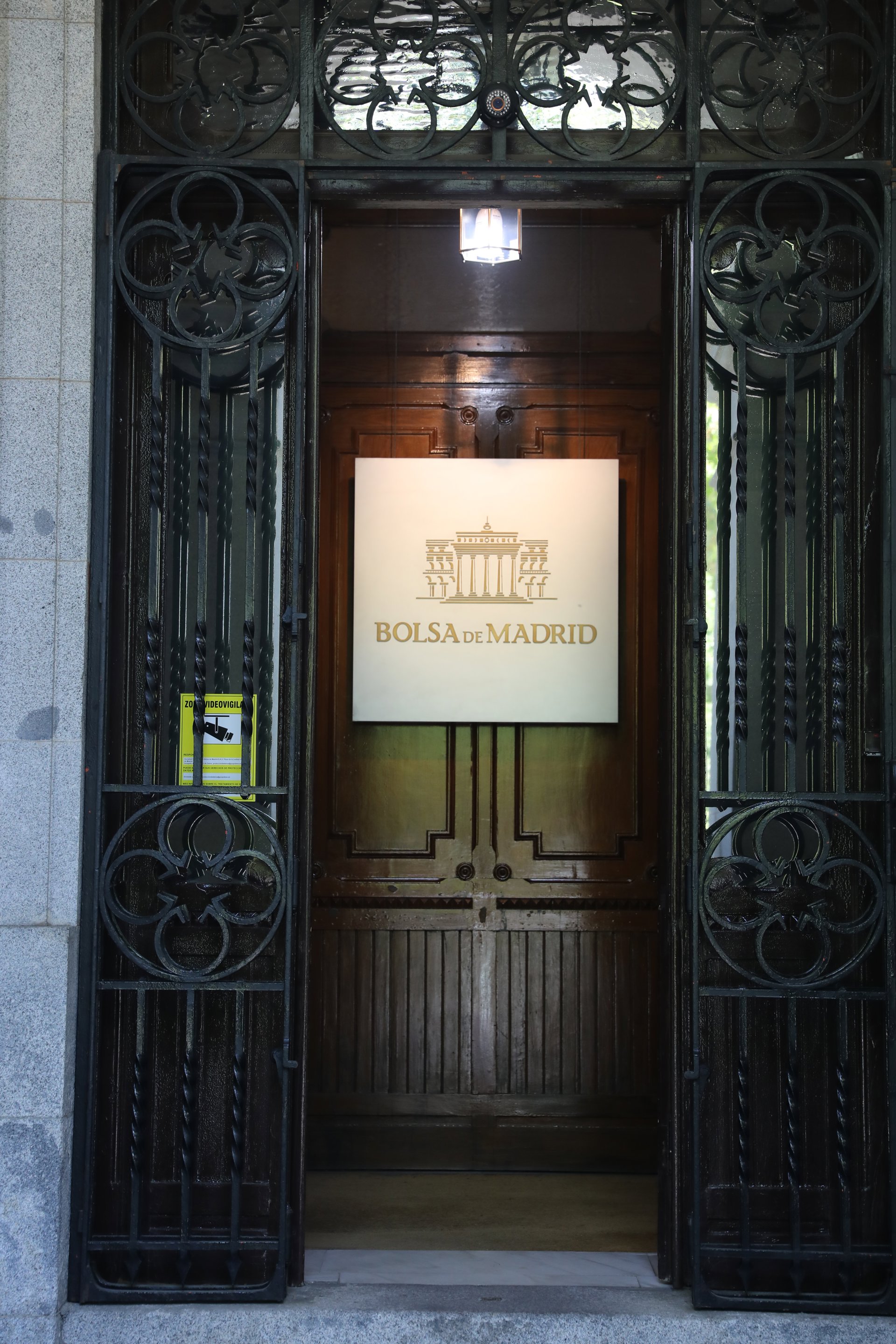 Archivo - Puerta de entrada al edificio de la Bolsa de Madrid, el día en que el Ibex 35 ampliaba sus ganancias al 2,19% en la media sesión de este miércoles, lo que le permitía hacerse con la cota de los 7.100 puntos en una jornada marcada de nuevo por - Marta Fernández Jara - Europa Press - Archivo