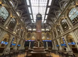 Columna central en el interior del Palacio de la Bolsa de Madrid (España), a 22 de septiembre de 2020. El Ibex 35 experimentaba un descenso del 0,12% en la media sesión de este martes, lo que llevaba al selectivo a situarse en los 6.684,2 enteros a las - Eduardo Parra - Europa Press - Archivo