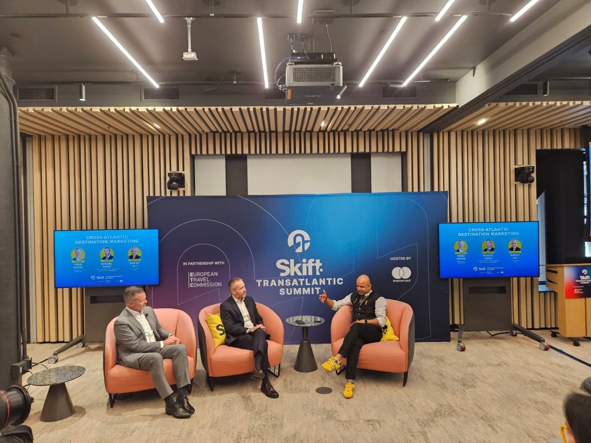 El director general de Turespaña, Miguel Sanz, participó ayer junto al comisario europeo de Transporte y Turismo Sostenible, Apostolos Tzitzikostas, en la cumbre transatlántica de turismo en el Mastercard Tech Hub de Nueva York (Estados Unidos), organizada por la European Travel Commission y Skift.