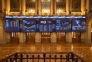 Archivo - Paneles del Ibex, en el Palacio de la Bolsa de Madrid, a 9 de enero de 2024, en Madrid (España). El Ibex 35 registraba al mediodía de este jueves, 9 de enero, un alza de un 0,5%, hasta situarse en los 11.857,1 puntos, en una jornada en la que Wa - Eduardo Parra - Europa Press - Archivo