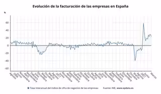 En valores mensuales y dentro de la serie corregida, la facturación empresarial registró en marzo su primer descenso mensual desde abril de 2021 al retroceder un 0,9%, en contraste con los incrementos mensuales, superiores al 2%, experimentados en enero y febrero de este año.