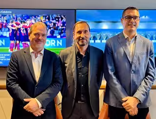 El director ejecutivo de Acció, Joan Romero; el portavoz adjunto del FC Barcelona, Miquel Camps, y el director de la Oficina Exterior de Comerç i d'Inversions en Nueva York (Estados Unidos), Robert Negre. - GENERALITAT